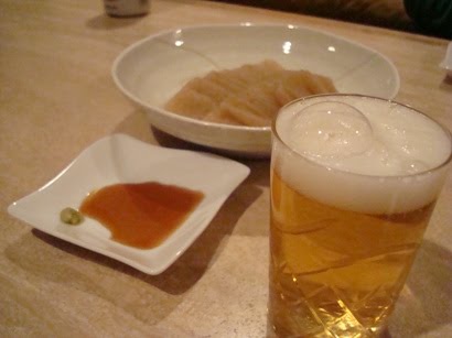 山葵醤油でいただきました。葱とポン酢で食べたら ふぐ刺しだった(^^)V