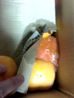 たねなし柿は収穫で1日、脱渋(渋抜き工程炭酸ガス使用)で3日、予備日として1日寝かせています。収穫後約1週間の時間を経てお客様のところにお届け。となります。箱詰め作業中に柿に傷が入り、出荷してしまったようです。すいませんでした。果物はとてもデリケートですので、傷の程度によりますが、簡単に1日で膿んで、痛んでしまいます。(人間と同じで、ちょっとした傷でも すごく腫れあがってしまったり 熱をもってしまったり・・・)