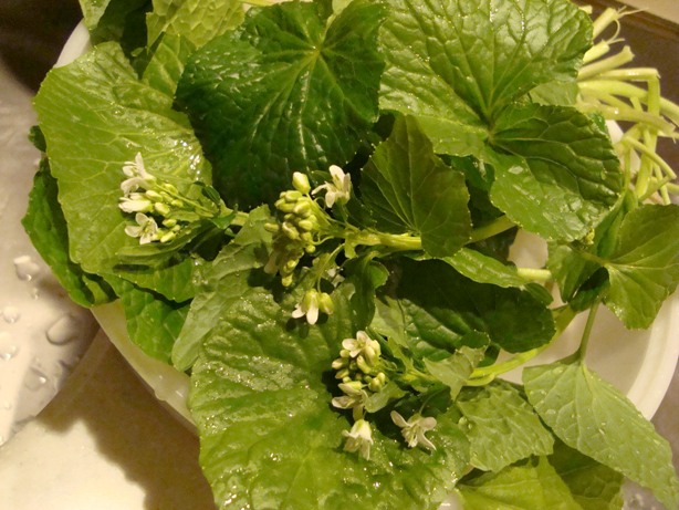 主人が近くの沢から摘んでくれた「葉わさび」