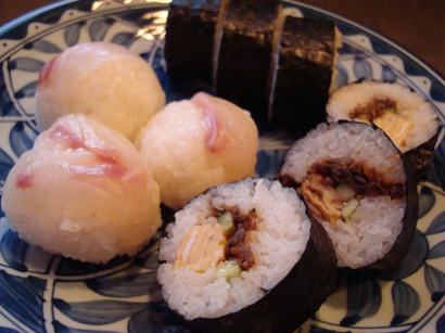 いかなご巻寿司と鯛の昆布〆手毬寿司