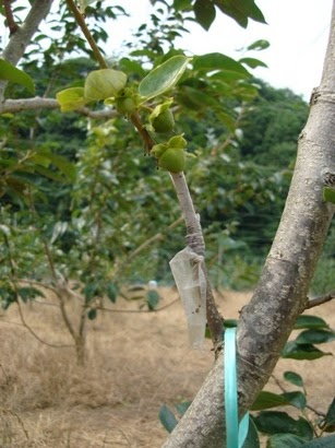 この雨の中も畑に出向き、柿の若木の世話に一生懸命です