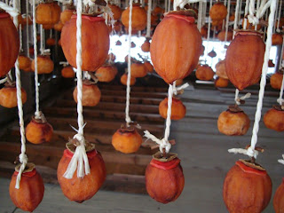 写真の真中はお隣の「栃原柿」という甘柿、渋柿、混合果実樹、珍しい大木です