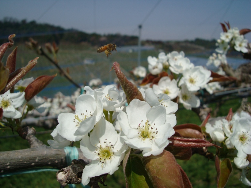 梨畑の交配です